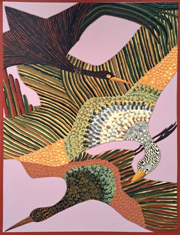 Title: Drie Vliegende Vogels Reimagined Acrylic on Canvas 1020mm by 760mm